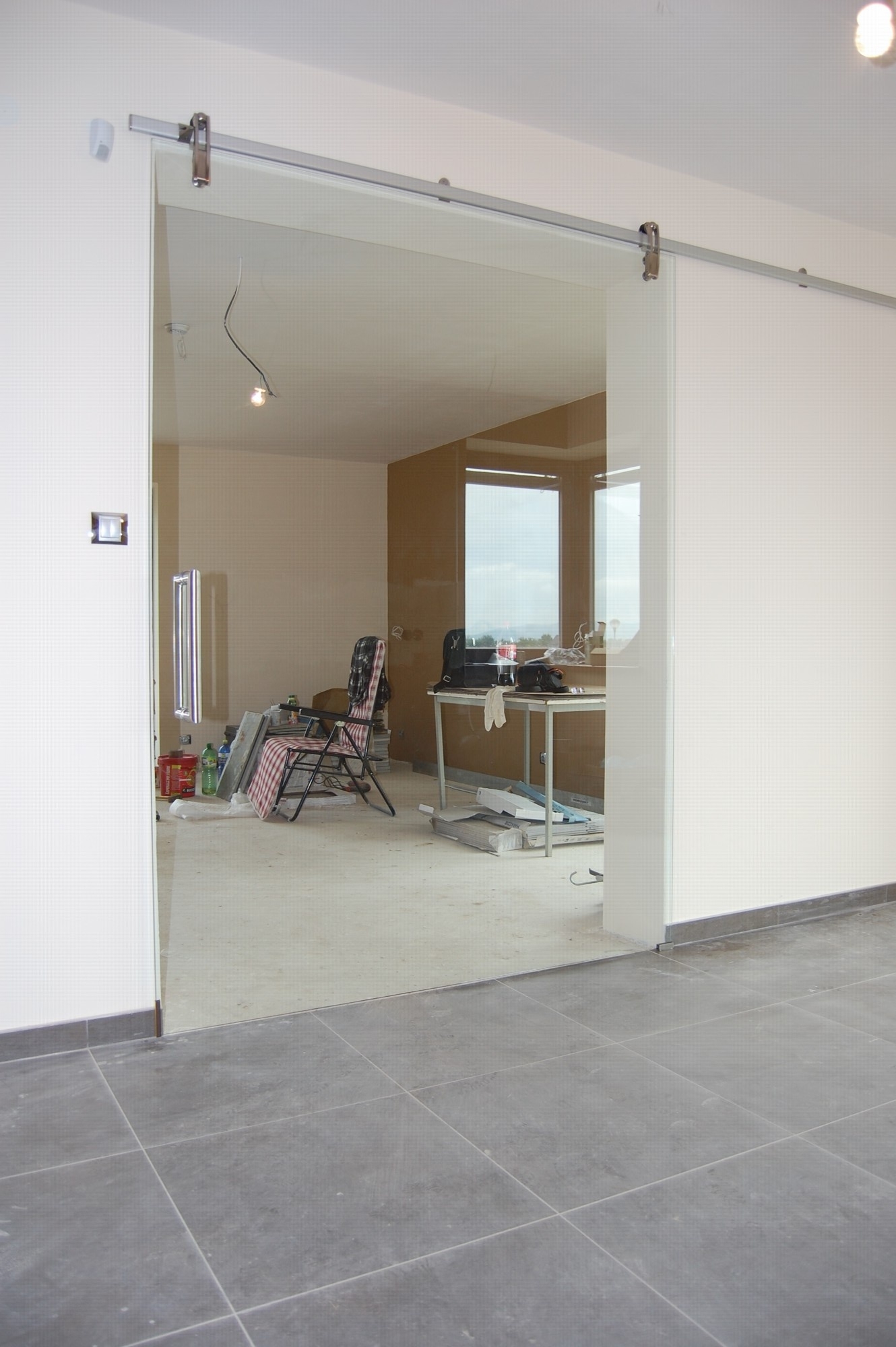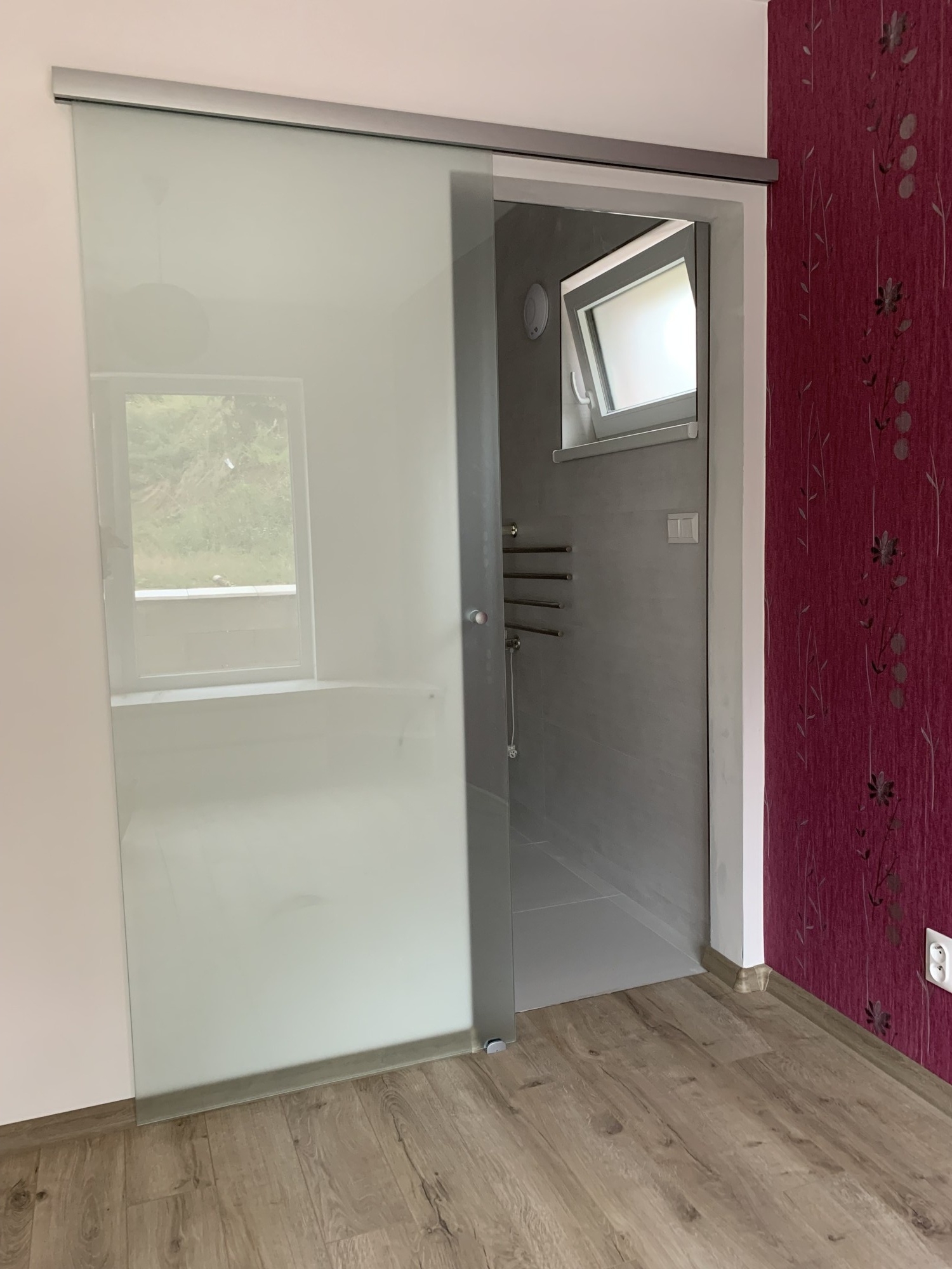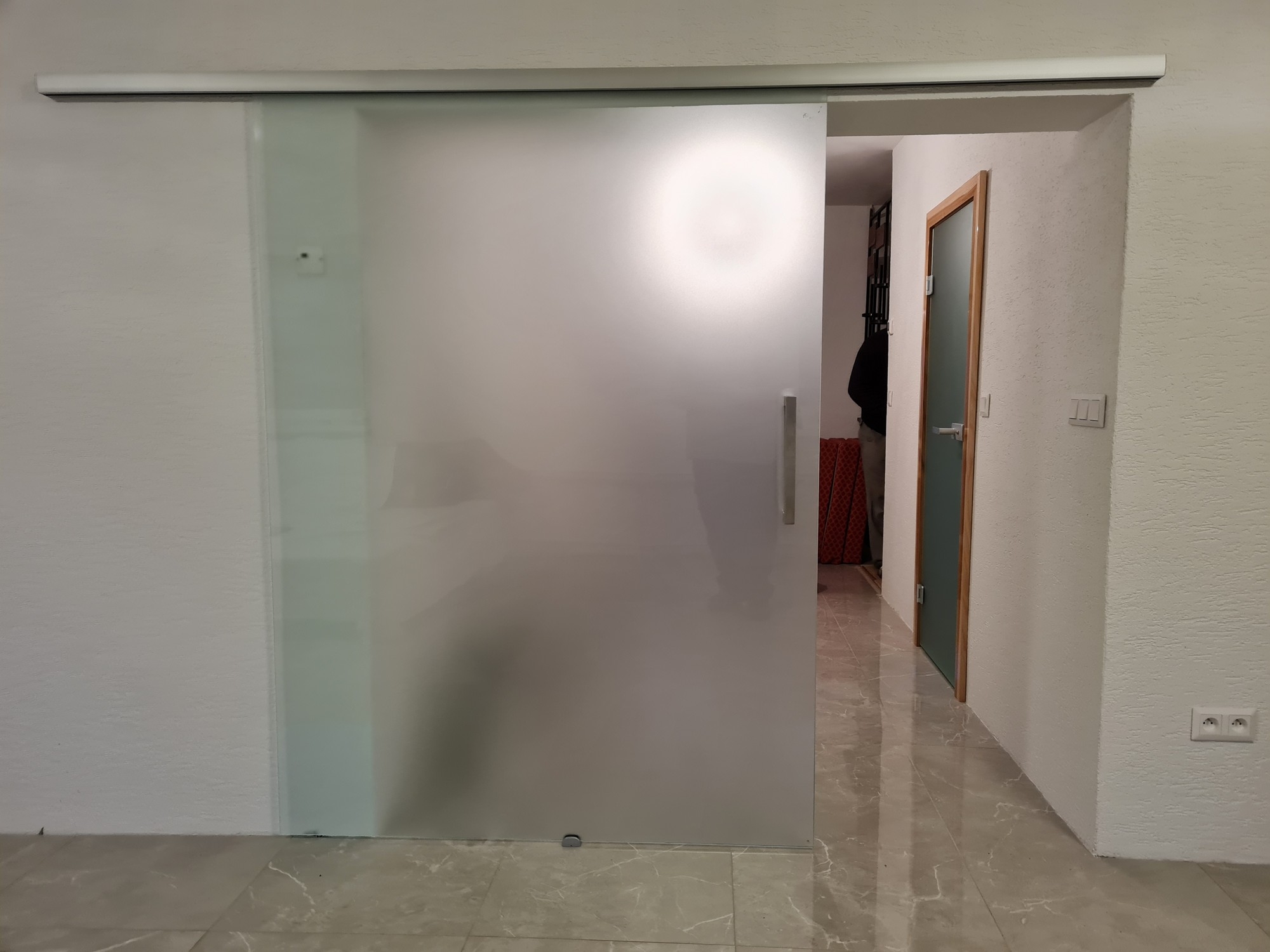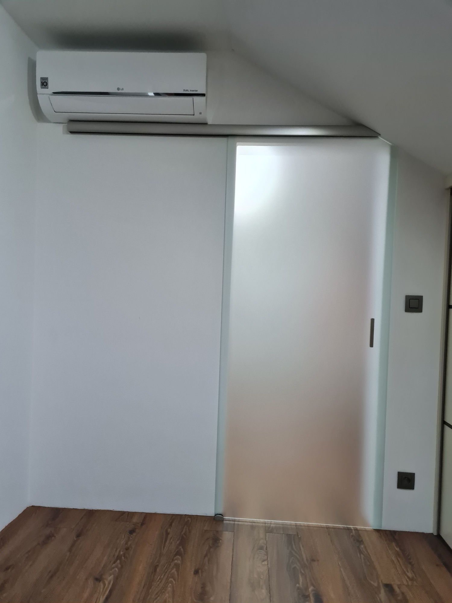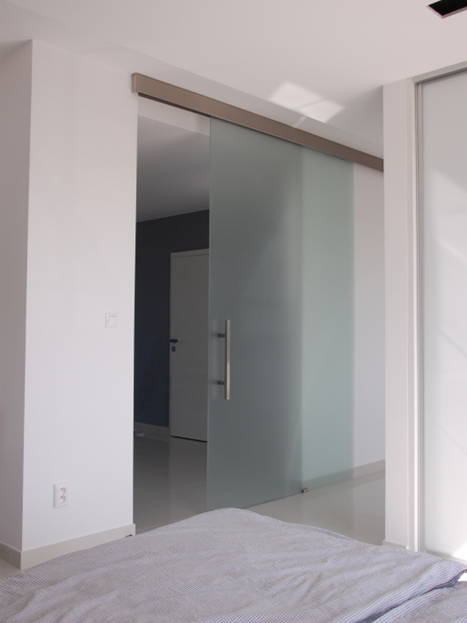 Bezbariérovosť: Sklo posuvných dvier je zavesené na posuvnom systéme a nepotrebuje spodné podlahovú koľajnicu čo je ideálne pre plynulý prechod..
