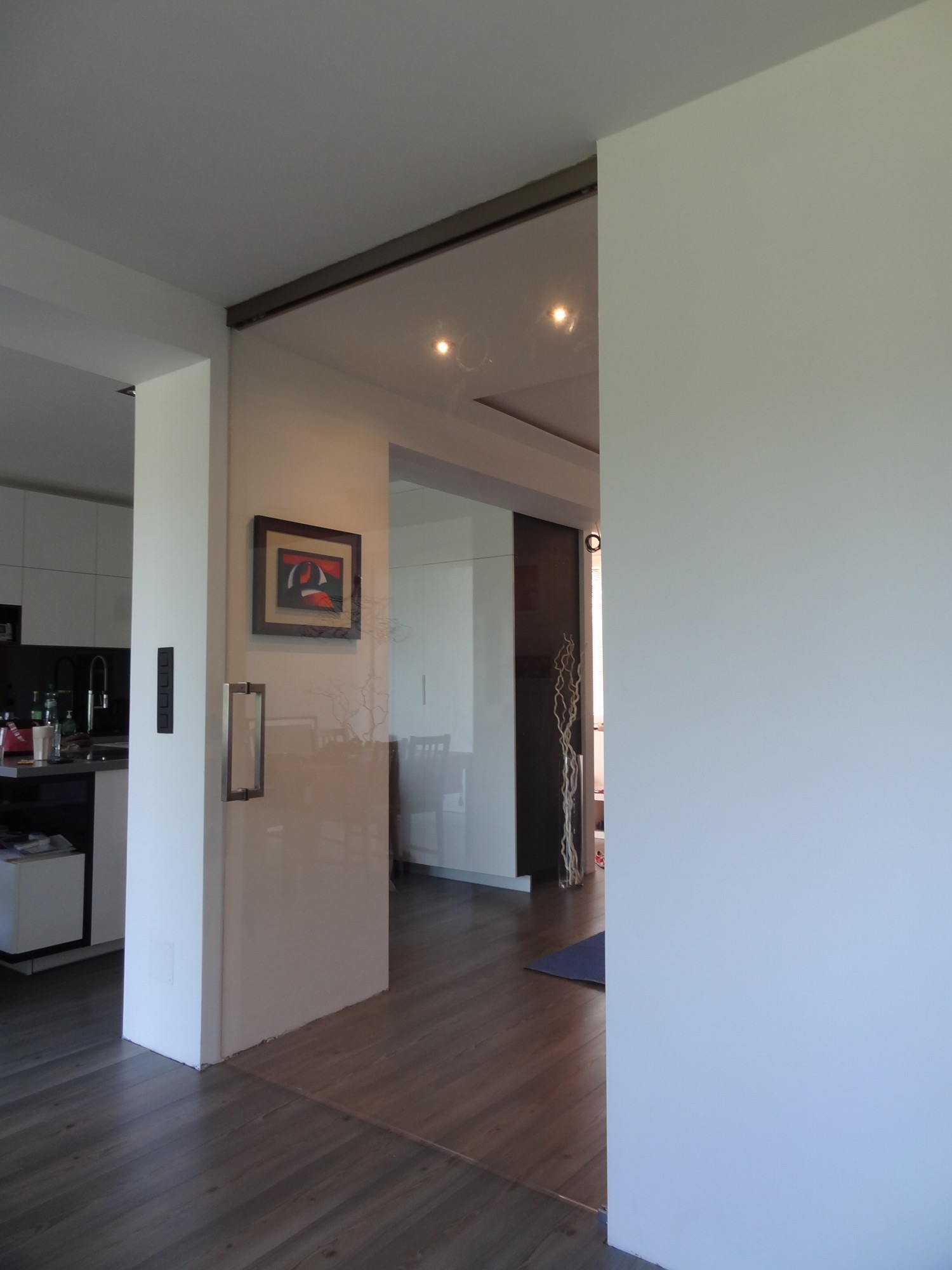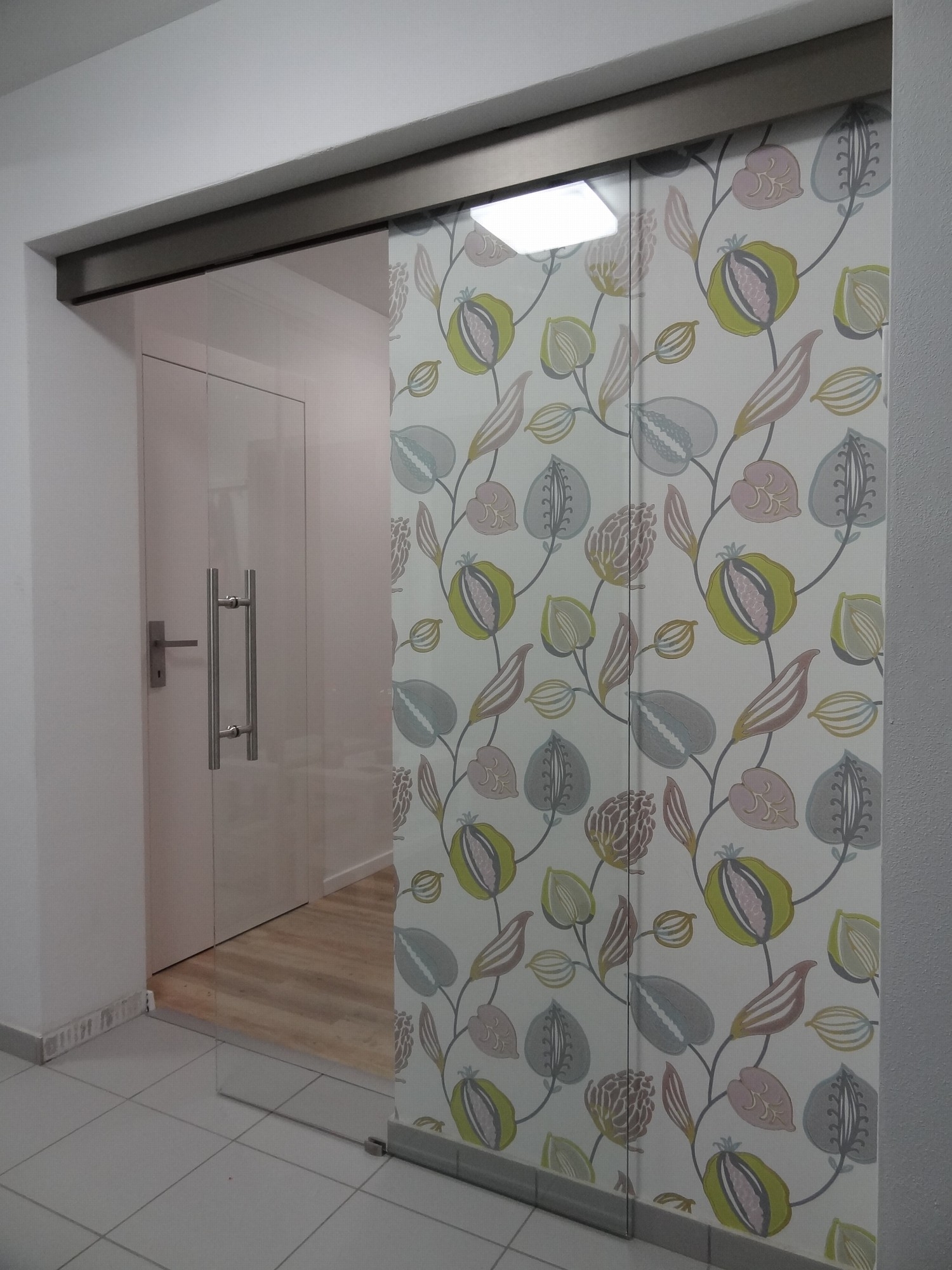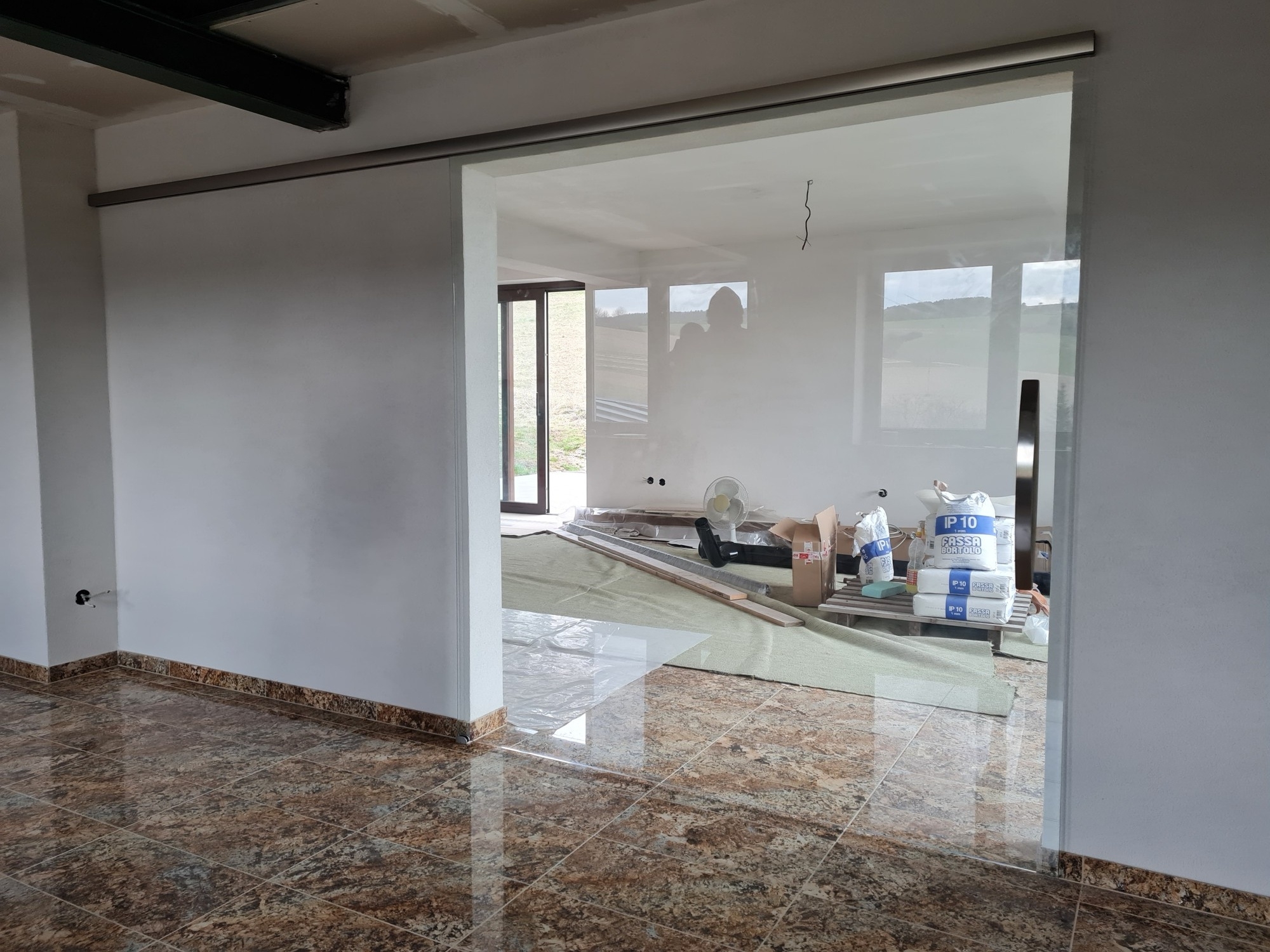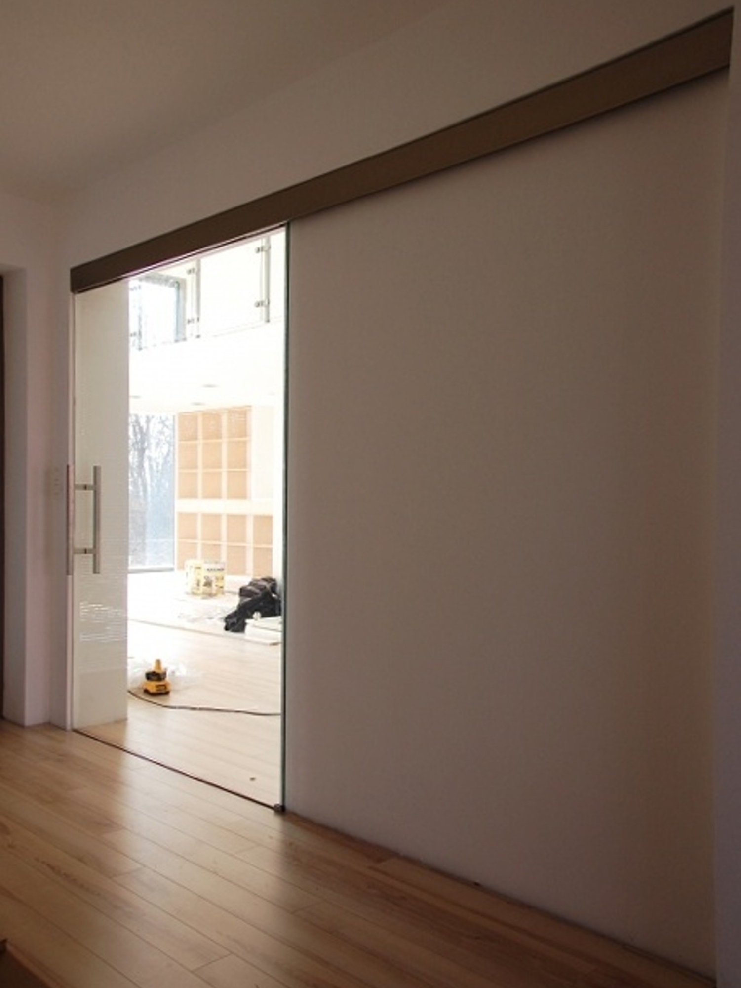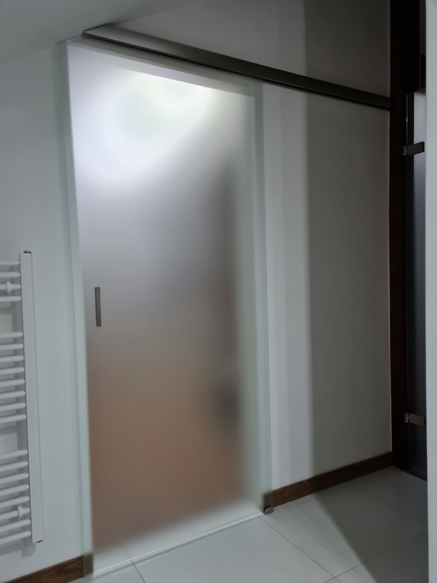 Bezbariérovosť: Sklo posuvných dvier je zavesené na posuvnom systéme a nepotrebuje spodné podlahovú koľajnicu čo je ideálne pre plynulý prechod..