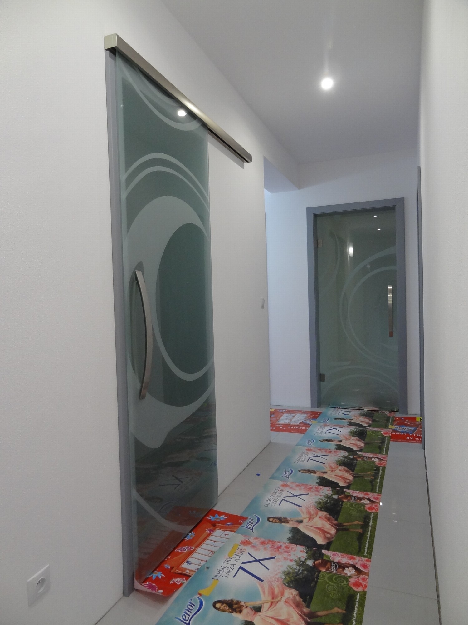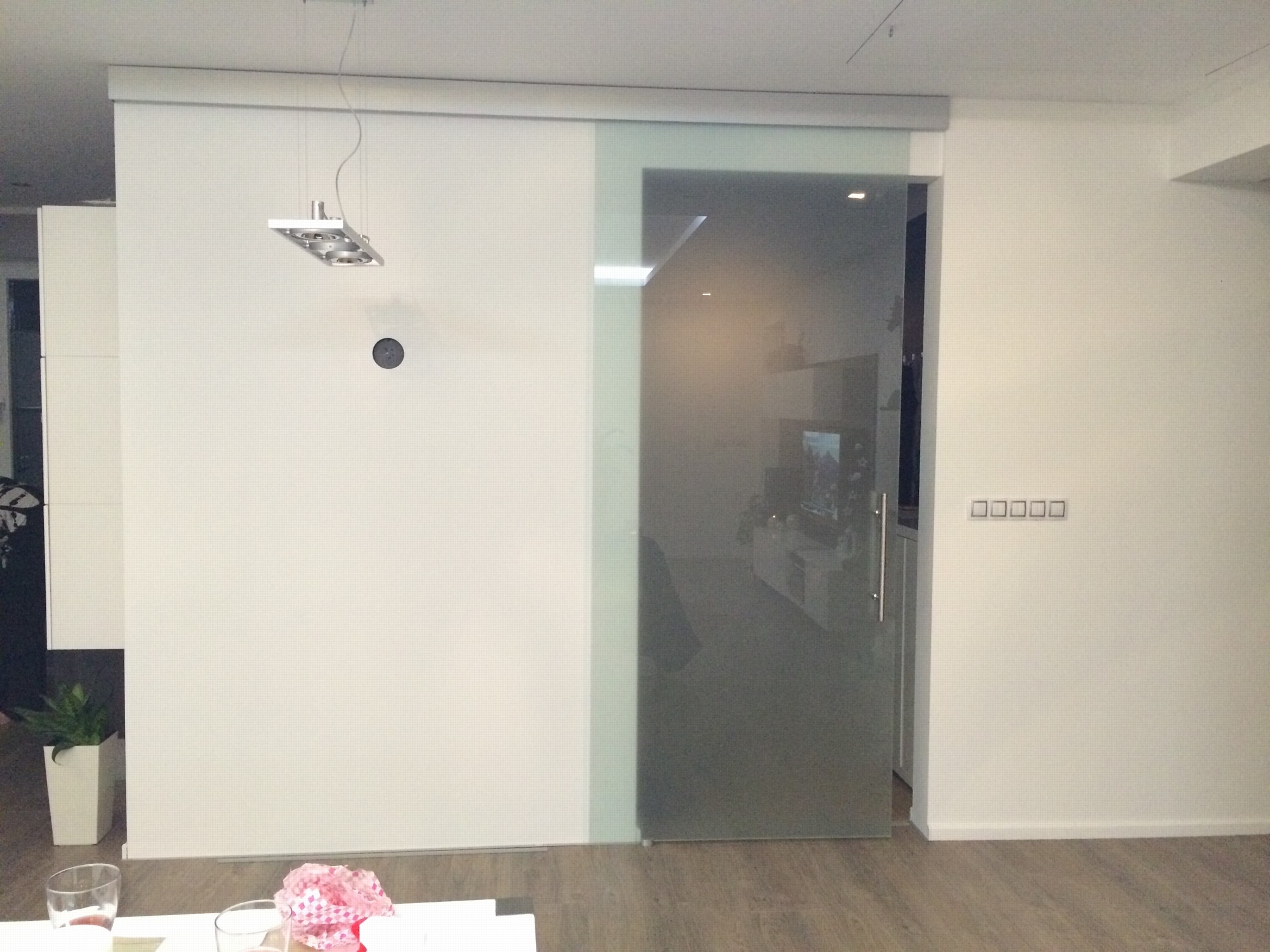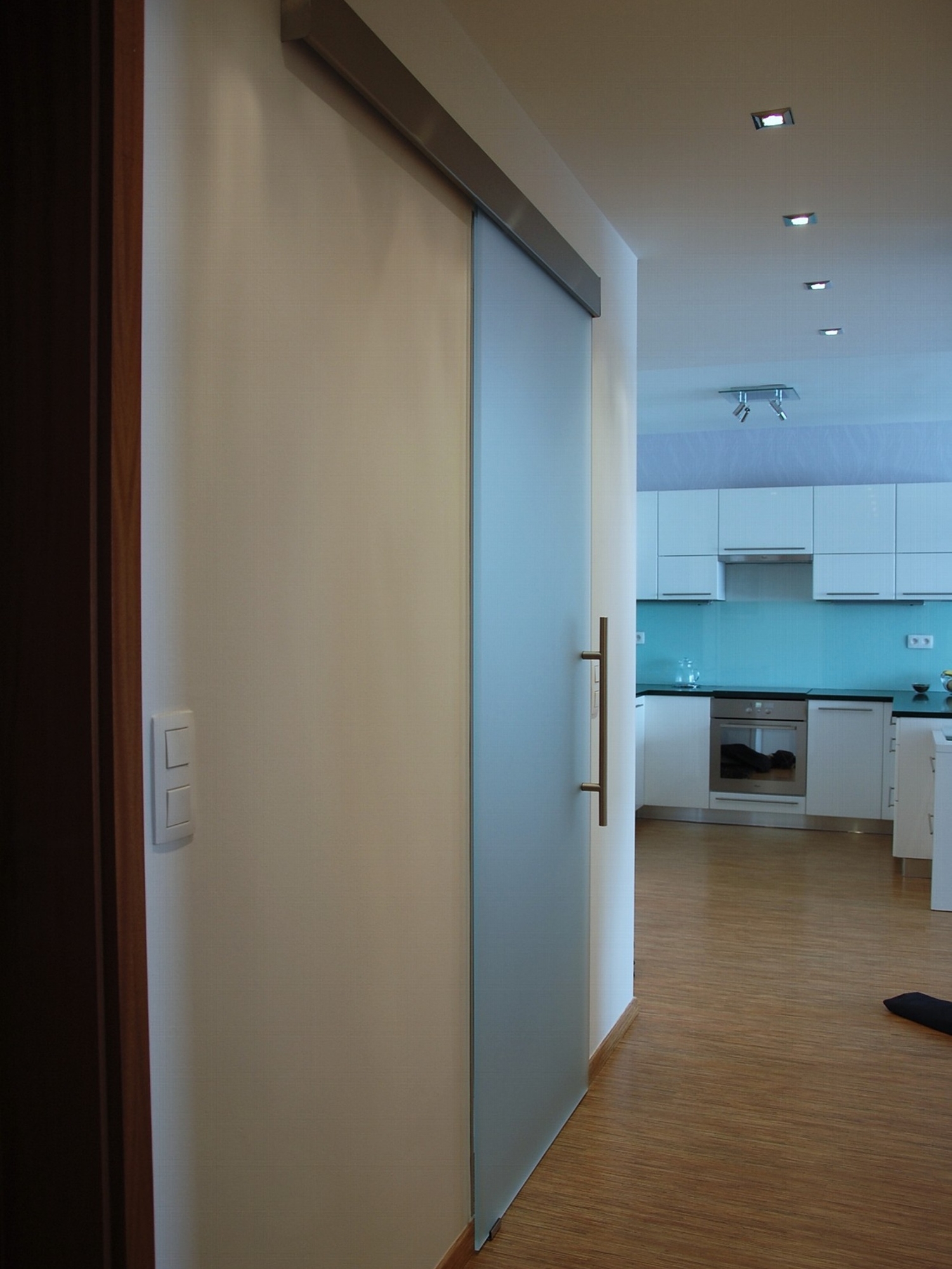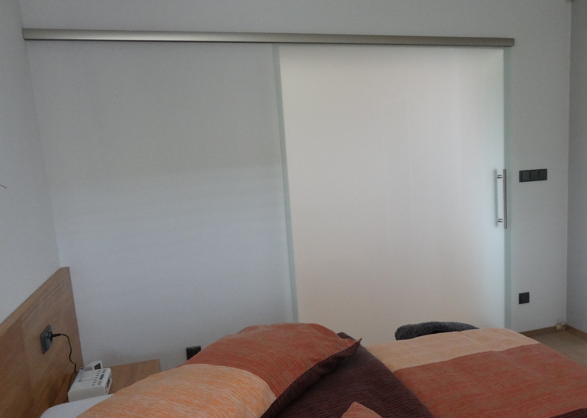 Bezbariérovosť: Sklo posuvných dvier je zavesené na posuvnom systéme a nepotrebuje spodné podlahovú koľajnicu čo je ideálne pre plynulý prechod..