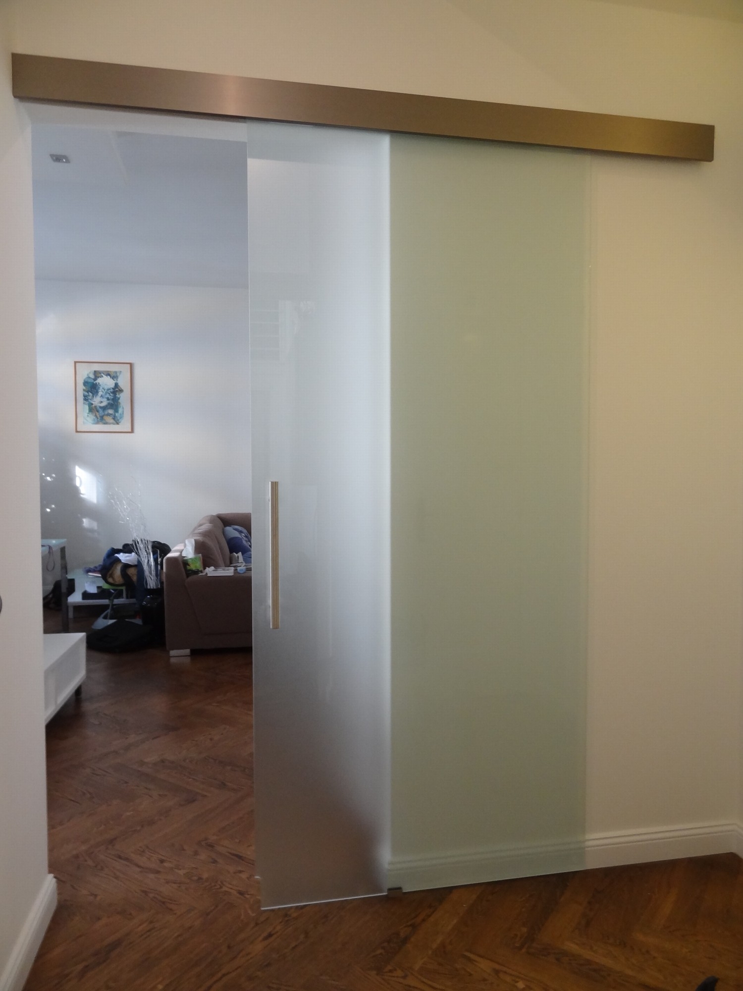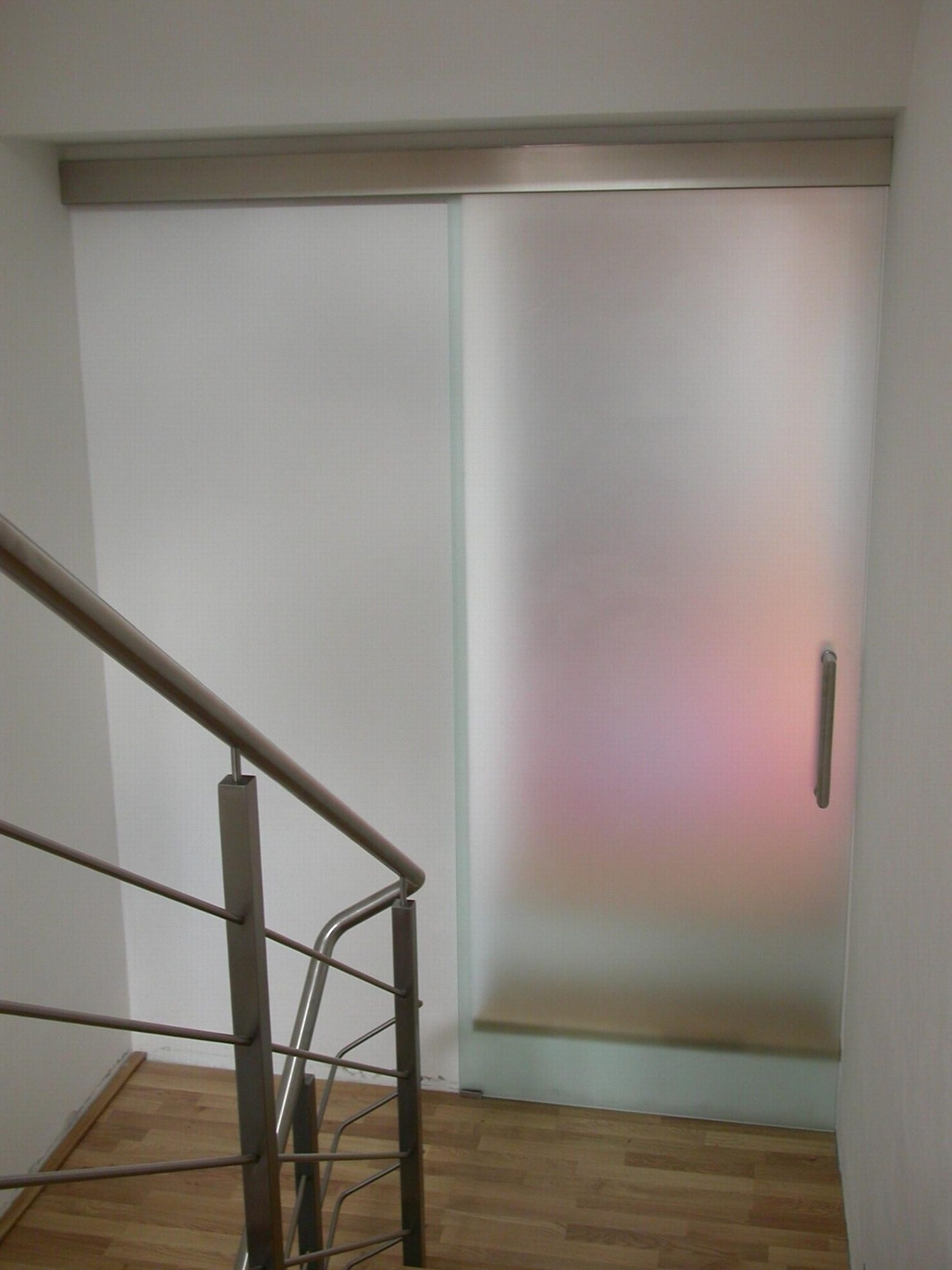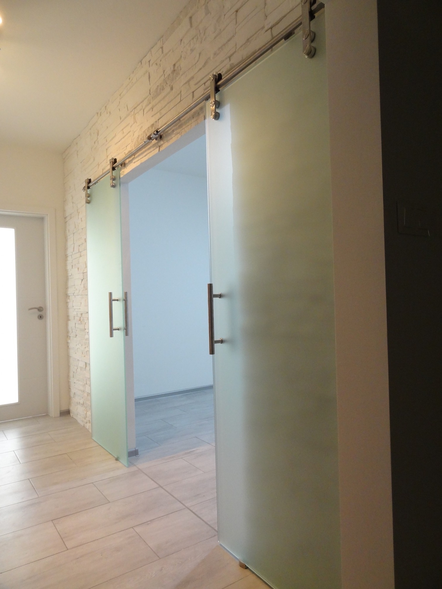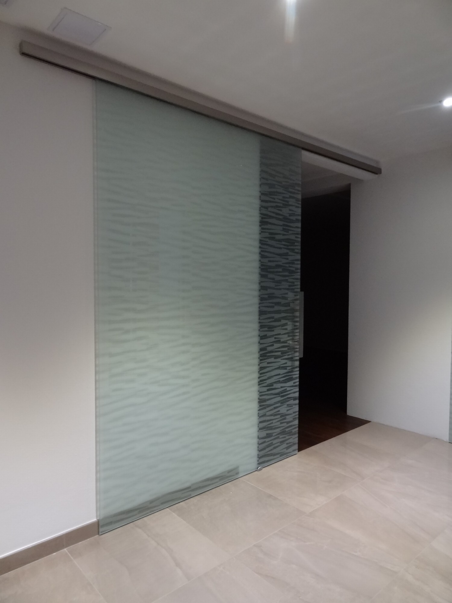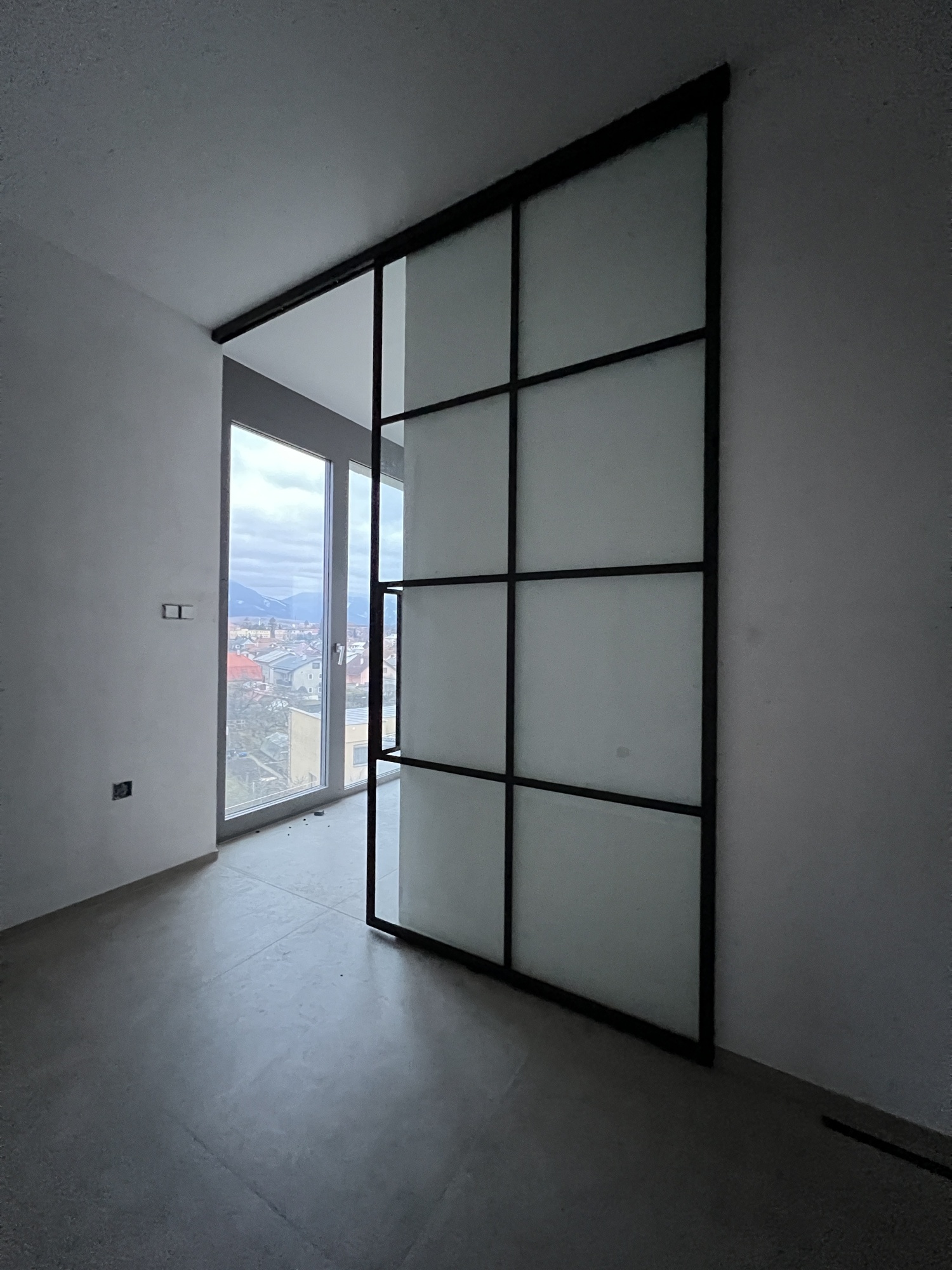 Bezbariérovosť: Sklo posuvných dvier je zavesené na posuvnom systéme a nepotrebuje spodné podlahovú koľajnicu čo je ideálne pre plynulý prechod..