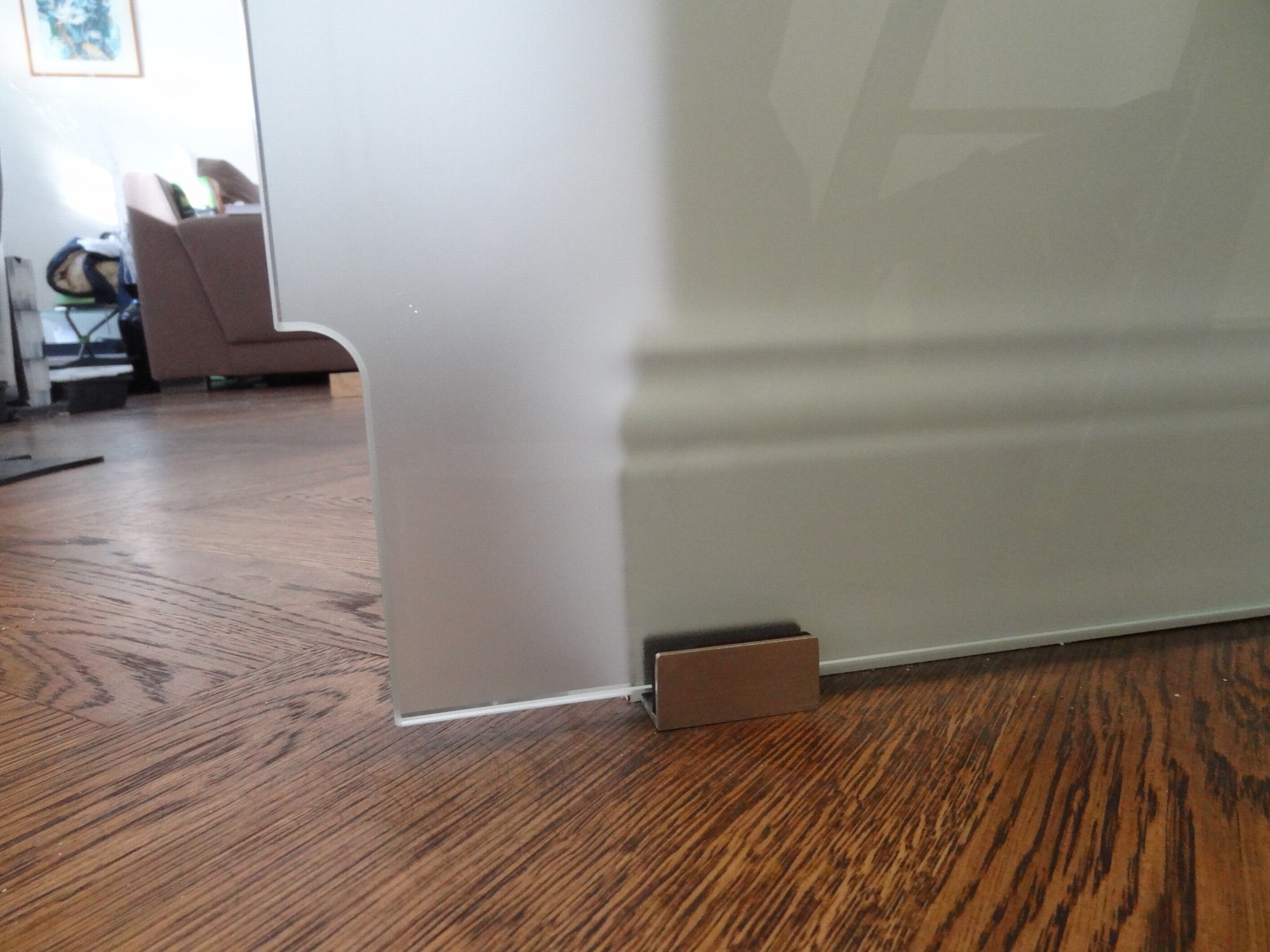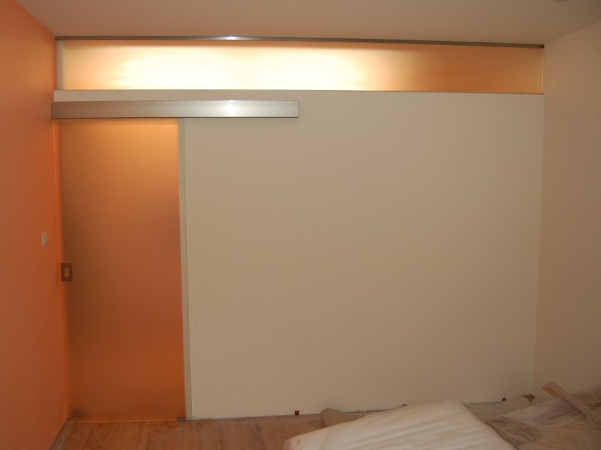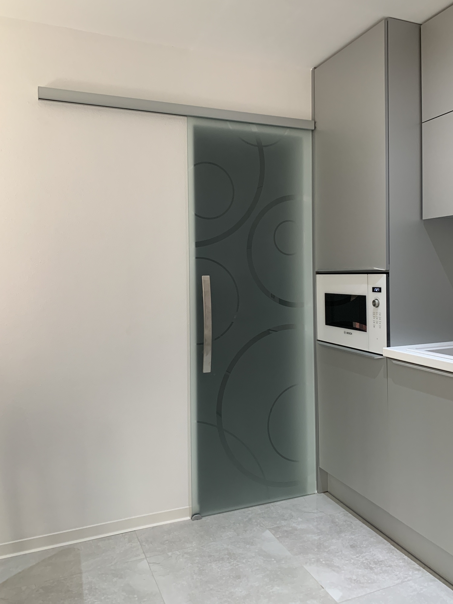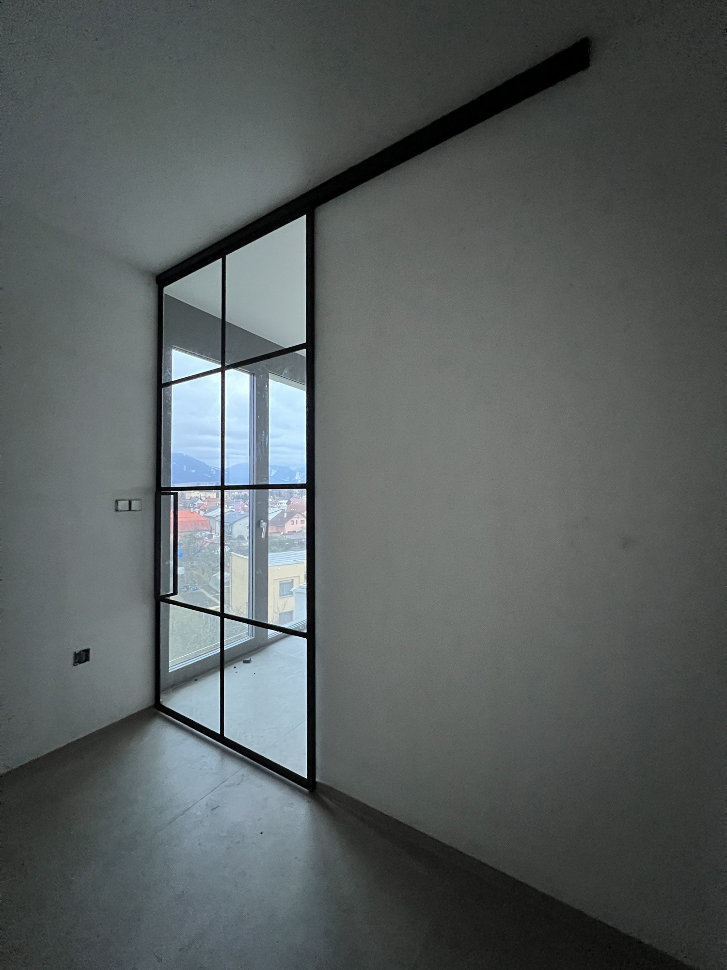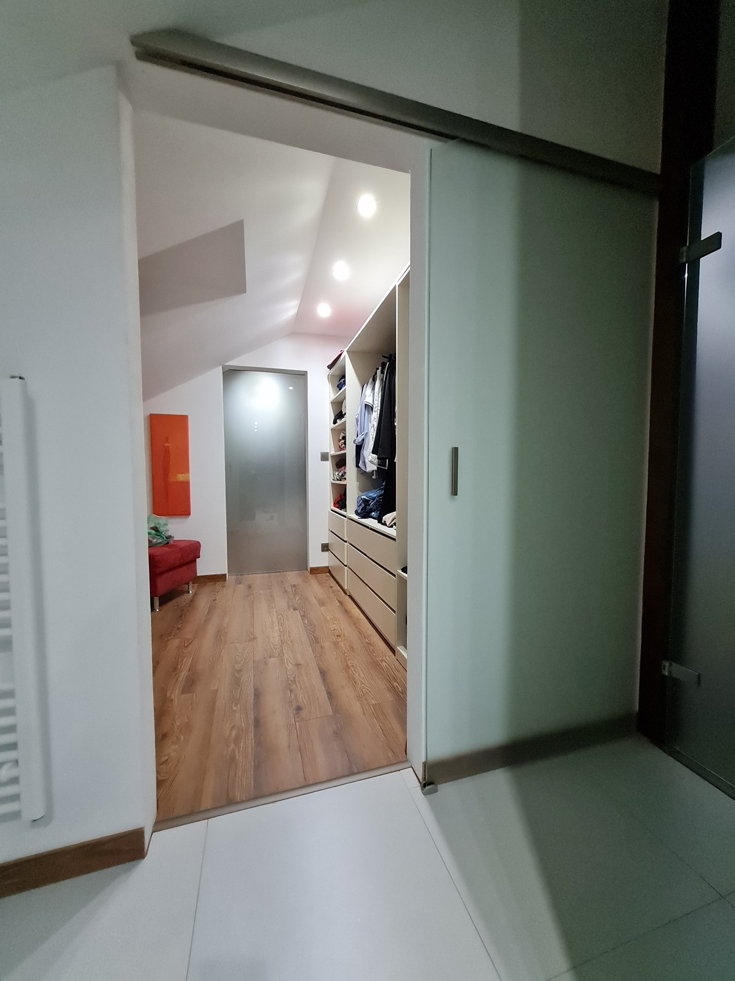 Bezbariérovosť: Sklo posuvných dvier je zavesené na posuvnom systéme a nepotrebuje spodné podlahovú koľajnicu čo je ideálne pre plynulý prechod..