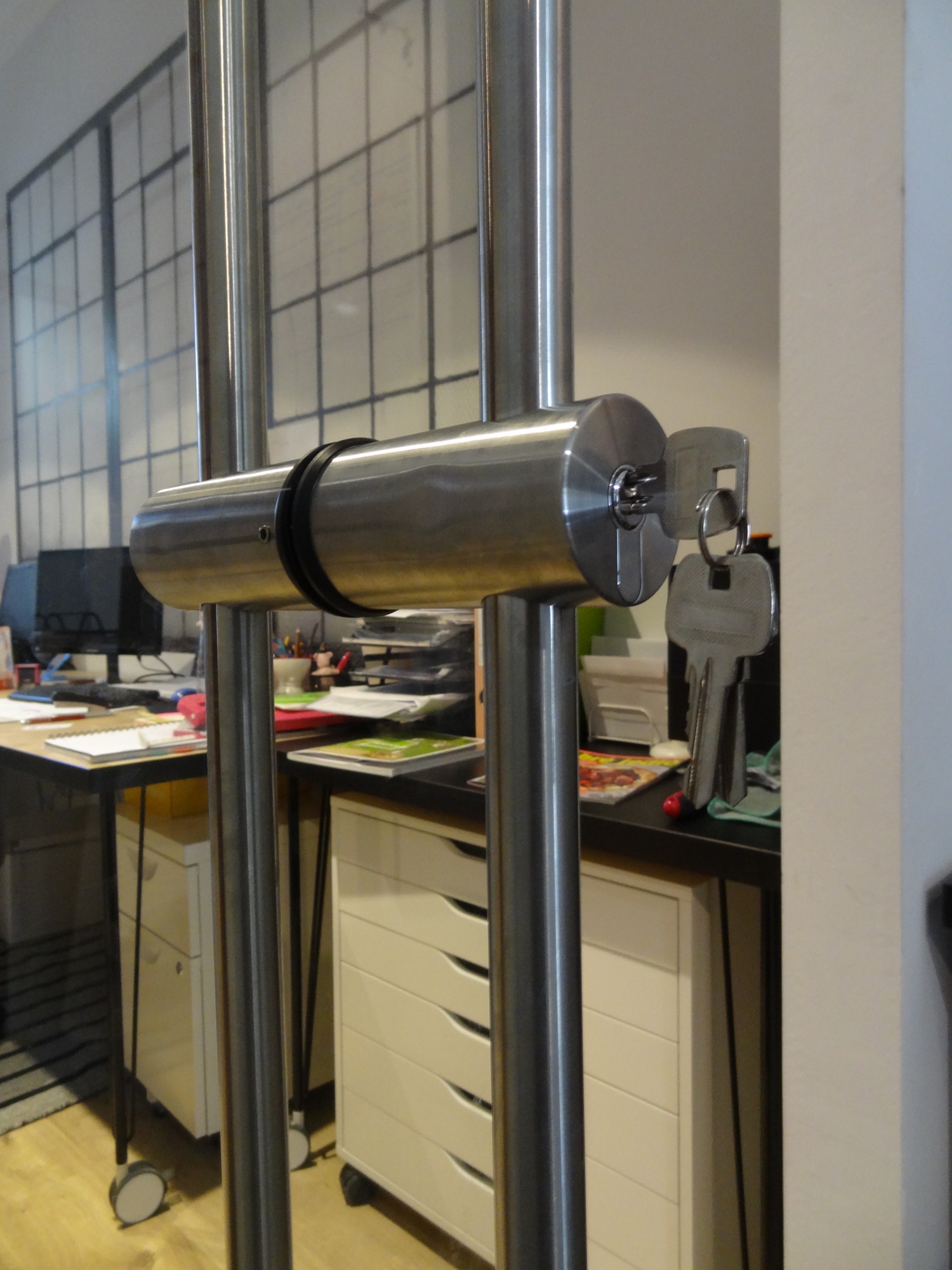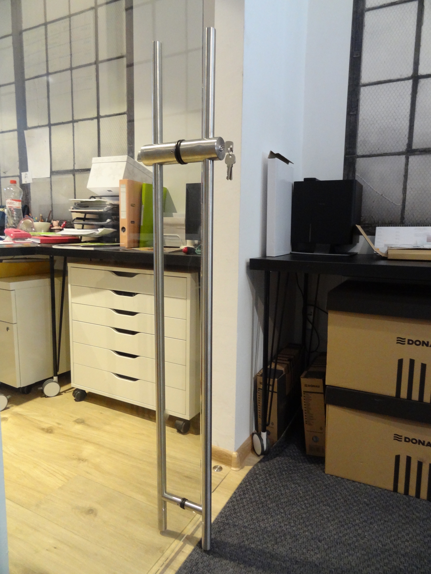 Madlá (tyče): Vyčnievajú do priestoru, poskytujú pohodlný úchop, ale dvere sa kvôli nim nedajú úplne zasunúť za stenu.