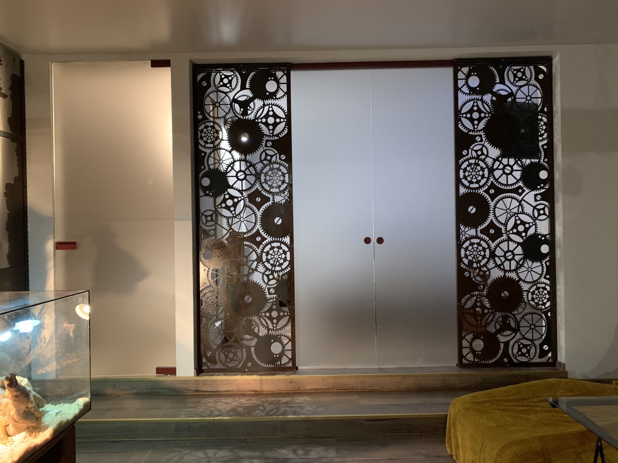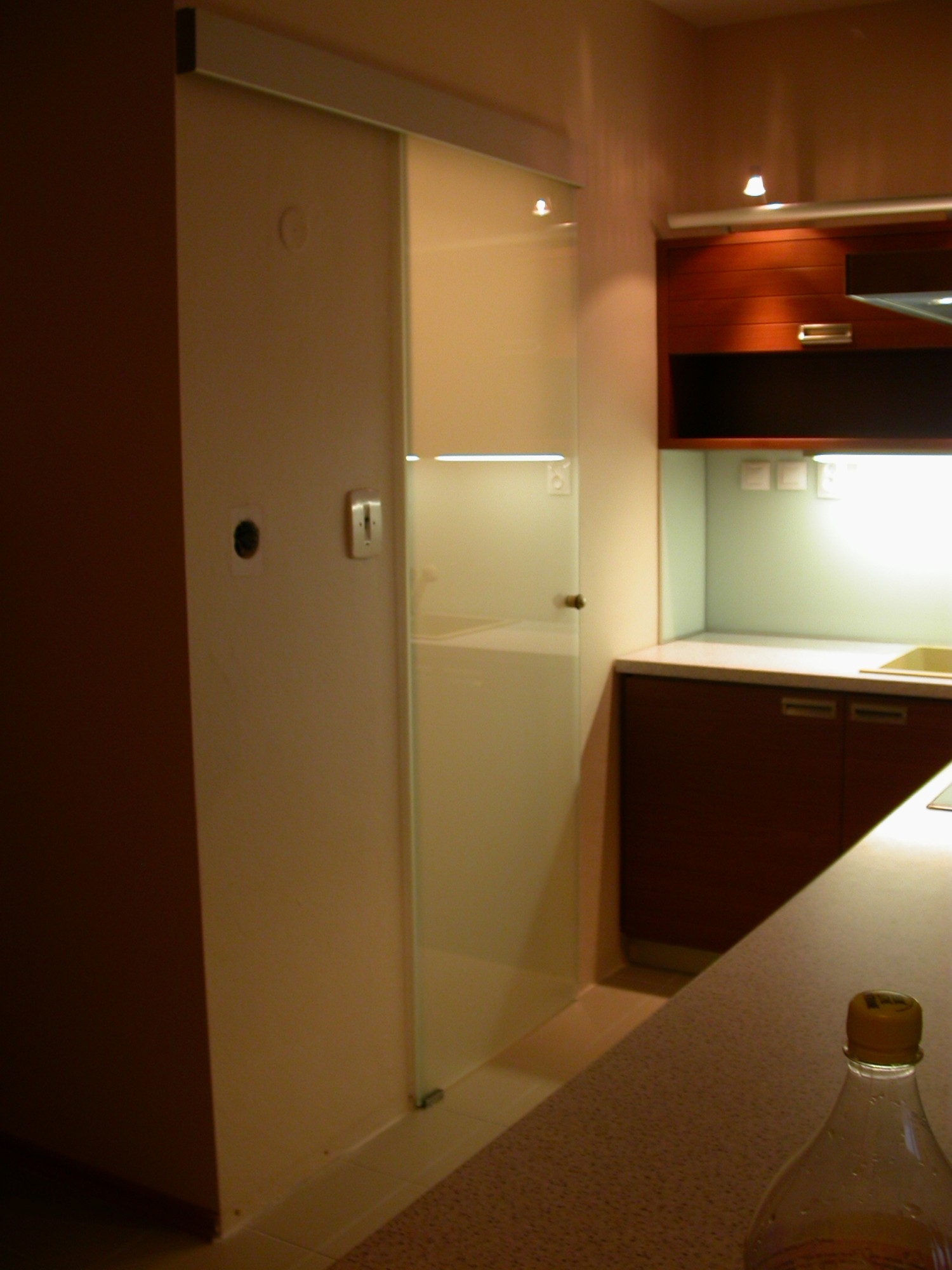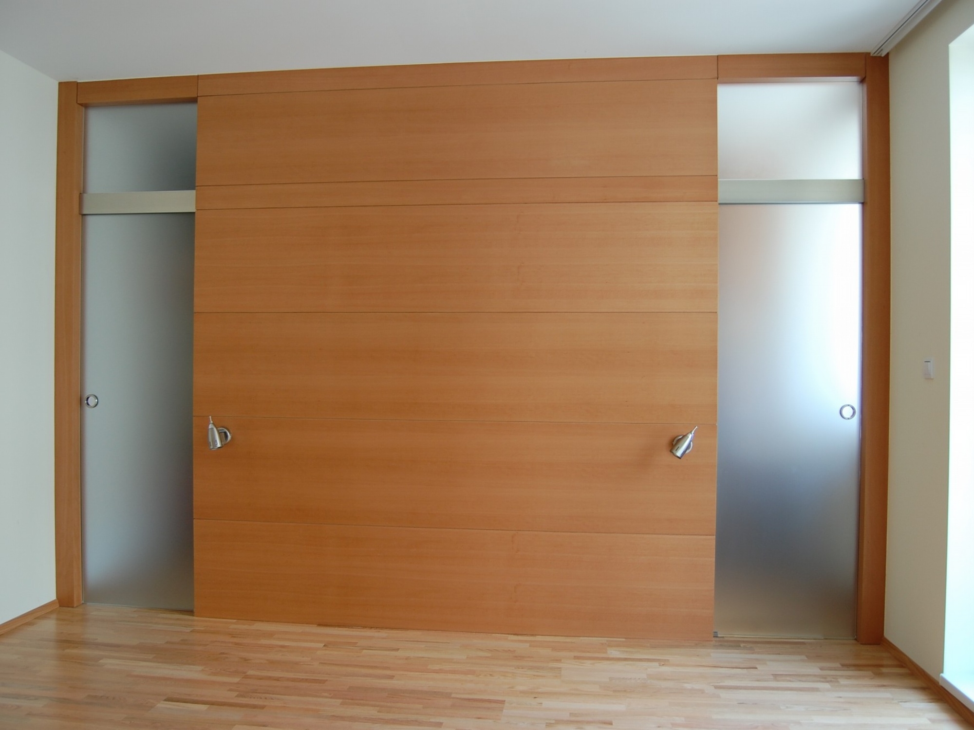 Mušle: Zapustené madlá, ktoré umožňujú dvere úplne zasunúť (napr. do puzdra alebo za stenu).